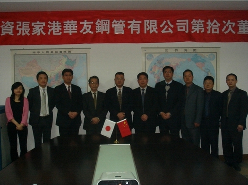 2010年2月4日 日本住友商事株式會社鋼管本部長中村勝、住友商事(中國)企業集團中國金屬部門長輔佐新宮宏司、住友商事(上海)有限公司金屬部門長輔佐木戶、金屬四部部 長費偉民等來我公司考察,并就本公司發展進行了深入探討。公司董事長、總經理陳玉琪、副董事長山田和夫、副...